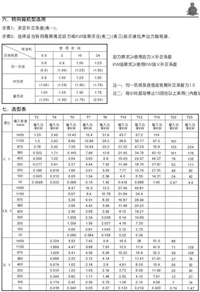 轉(zhuǎn)向箱機(jī)型選用,選型表