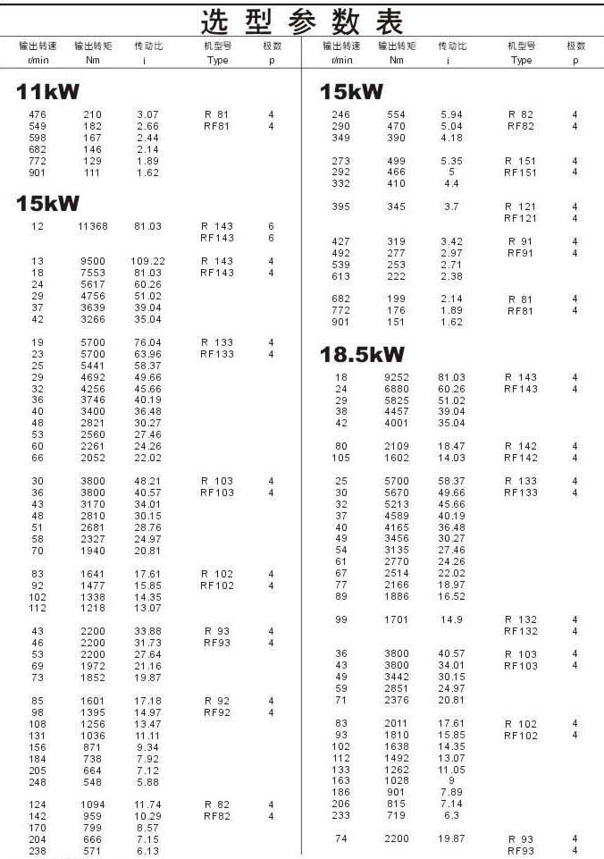 選型參數表11kW(續(xù)),,15kW,18.5kW